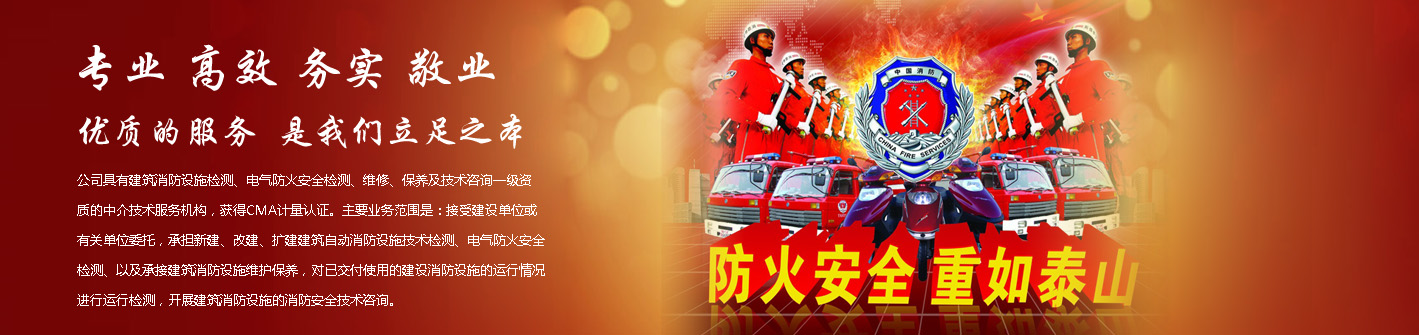 公司具有建筑消防設施檢測、電氣防火安全檢測、維修、保養(yǎng)及技術咨詢一級資質的中介技術服務機構,獲得CMA計量認證。主要業(yè)務范圍是:接受建設單位或有關單位委托,承擔新建、改建、擴建建筑自動消防設施技術檢測、電氣防火安全檢測、以及承接建筑消防設施維護保養(yǎng),對已交付使用的建設消防設施的運行情況進行運行檢測,開展建筑消防設施的消防安全技術咨詢。公司設辦公室、總工辦、財務部、檢測部、維保部等職能機構,擁有一