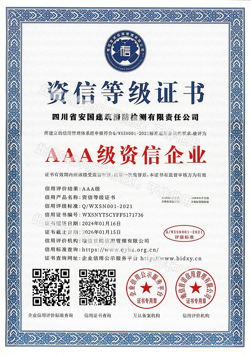 四川省安國建筑消防檢測有限責任公司,成立于1998年,經(jīng)四川省公安消防總隊批準,工商部門注冊的獨立法人單位。